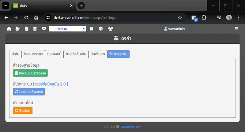 9.) มีฟีเจอร์สำรองฐานข้อมูล และอัปเดทระบบ