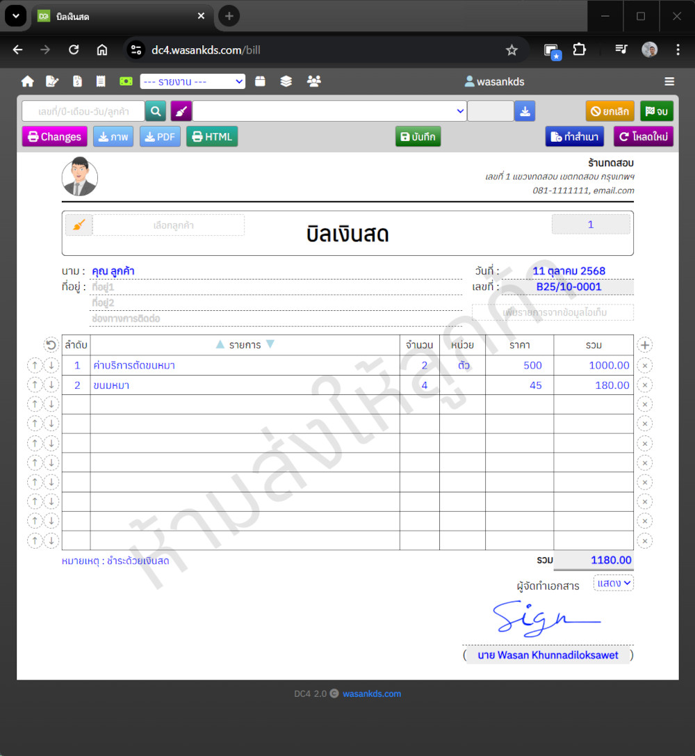 ตัวอย่างหน้าสร้างบิลเงินสด