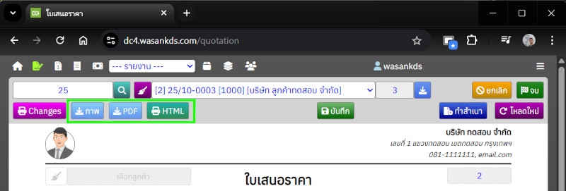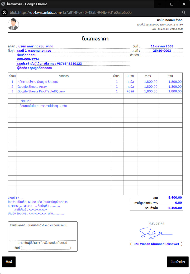 ตัวอย่างการพิมพ์ใบเสนอราคาแบบ HTML เพื่อพิมพ์ลงกระดาษ A4