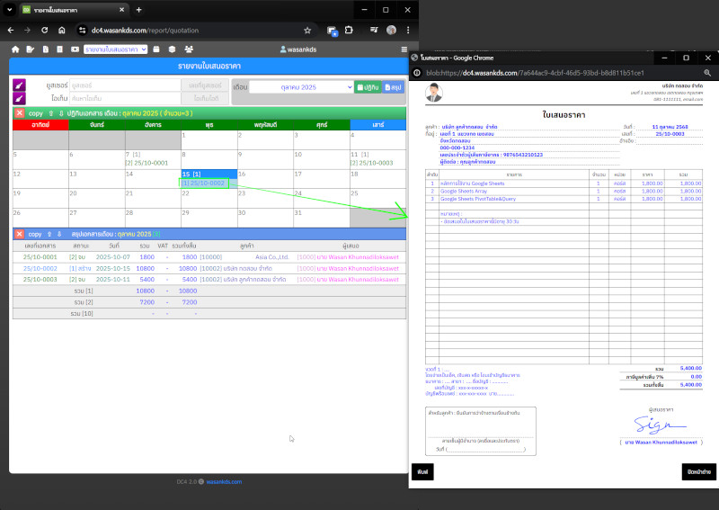 ตัวอย่างหน้าสร้างใบเสนอราคา