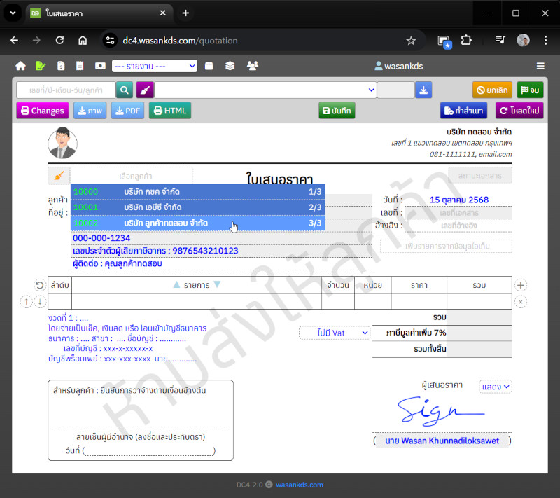 3.) สามารถเลือกลูกค้าจากฐานข้อมูล หรือพิมพ์เองก็ได้